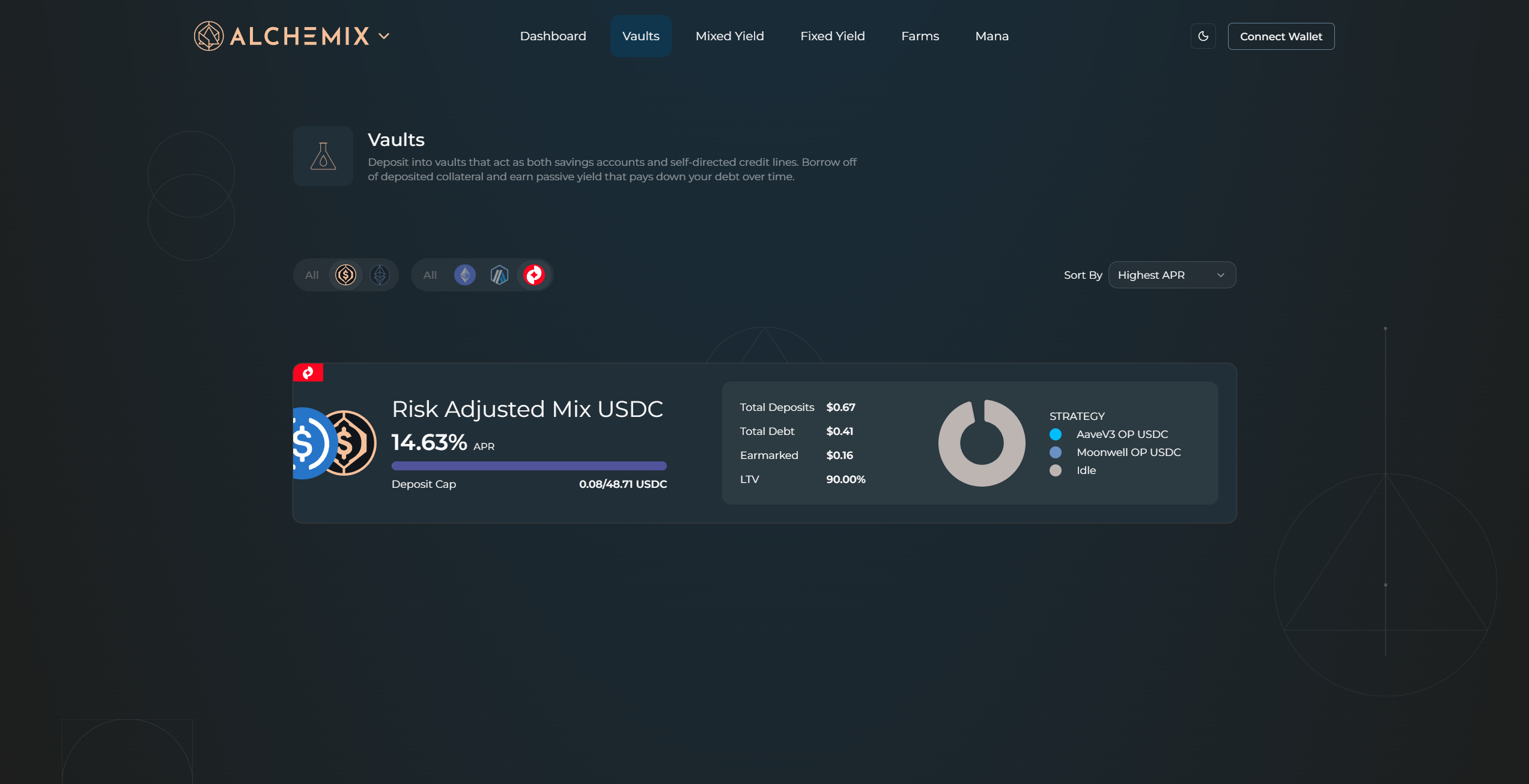 Strategy ceilings – in the same window, you’ll see the DAO-set maximum share percentage for each strategy that makes up the MYT vault. Therefore, there is a maximum allowed % of high risk strategies in each bucket.